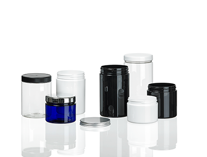 Round jars available for any type of product including sport nutrition, vegan supplements, healthy food like chocolate spreads and peanut butter.